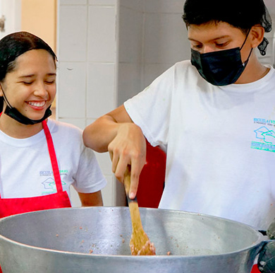 Donde damos una educación dual, material escolar, alimentación, y uniforme a jóvenes en riesgo de extrema pobreza.